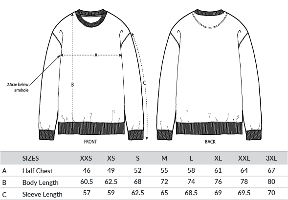 Set-in sleeve. 1x1 rib at neck collar, sleeve hem and bottom hem. Inside herringbone back neck tape. Self-fabric half-moon at back neck. Single-needle topstitch at neck collar. Armhole, sleeve hem and bottom hem with twin-needle topstitch. Certified GOTS, Vegan, Fairwear, OEKO-TEX® Organic